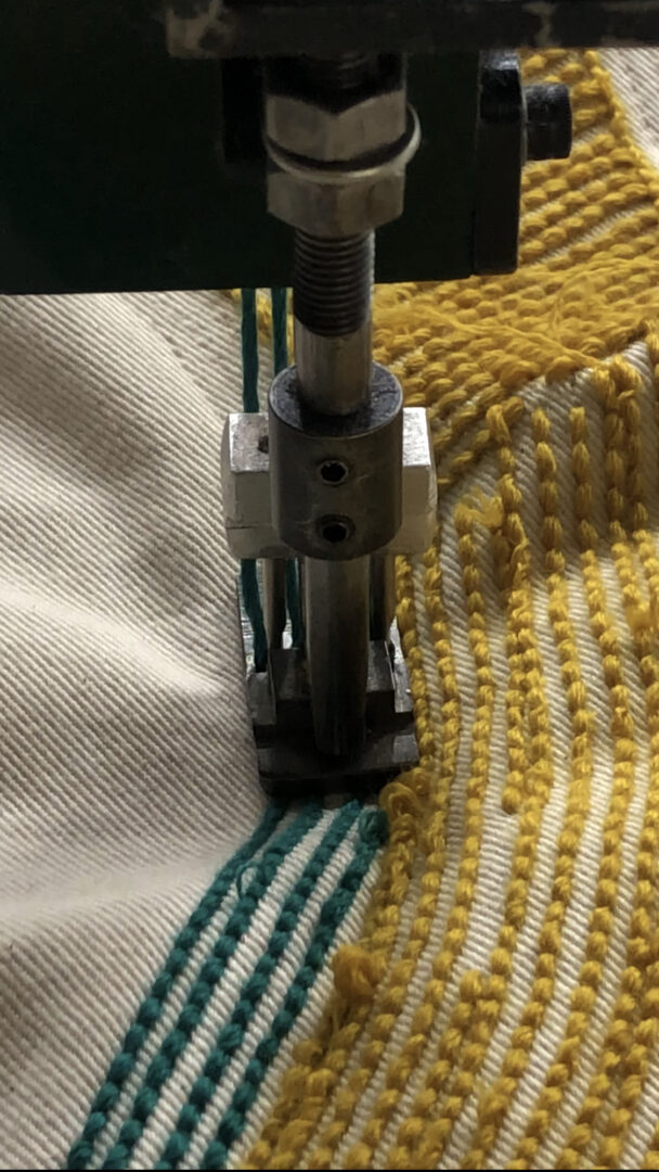 I motivi risultanti sono stati riprodotti attraverso la tessitura su supporto in canvas, sperimentando diverse combinazioni di filati: lana merino, cashmere e seta, con varianti in seta, cotone e acrilico. L’opera si presenta come una serie di campioni di tessuto (45 × 45 cm).